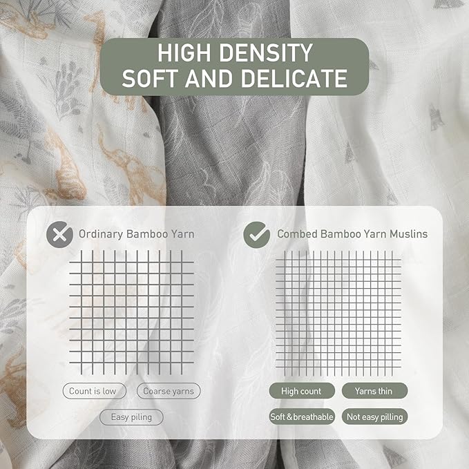 - Kind to Baby's Skin: Soft and silky natural fabric—the best fabric for babies—is up to 3 times softer than regular cotton and maintains durability. Our swaddle blanket set is made of 70% viscose derived from bamboo and 30% cotton, which is softer, lighter, and more skin-friendly than 100% organic cotton. Breathable and gentle on sensitive skin, these breathable muslin squares are perfect for your little one