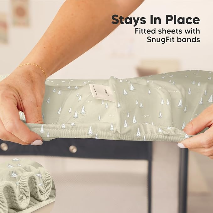 2-Pack Mini Crib Sheets Fitted - 38x26 Pack N Play Sheets for Pack and Play Mattress, Organic Cotton, Soft & Breathable Playard Bedding, Neutral Mini Toddler Bed Cover for Boys, Girls (Pine Grove)