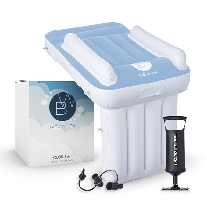 - We have included a pump that quickly and easily inflates the toddler travel bed airplane in just a couple of minutes, and the special valve design allows for deflation in mere seconds