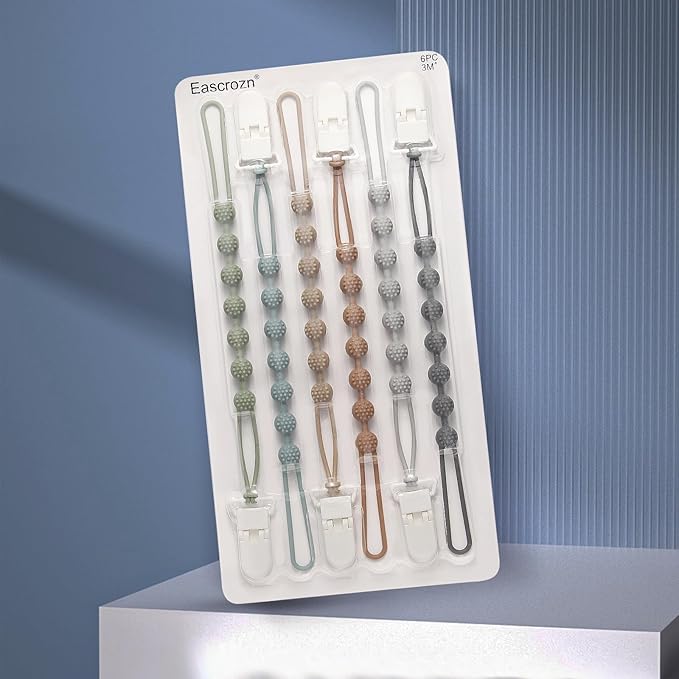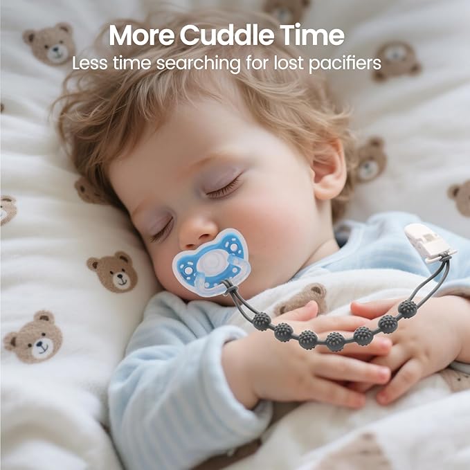 - Teething Relief: These pacifier clips can be used with all wearable baby pacifiers and teething relief items, our pacifier chain is designed with textured beads that can effectively relieve your baby's teething discomforts and sore gums, very practical and a must-have for your baby's list of essentials.