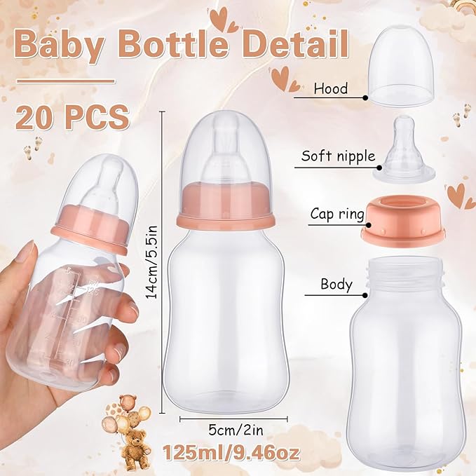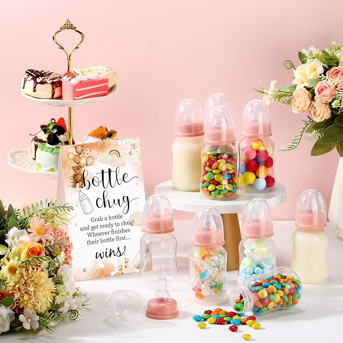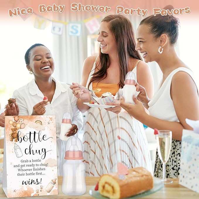 - Package Inclusion: baby bottles for baby shower provides you with a complete party enhancement package; Each package comes with 20 baby bottles and 1 chug sign, which is sufficient for a sizable party, enabling people to engage in the fun and excitement; The abundant supply ensures no one is left out, and everyone gets to participate fully in the games