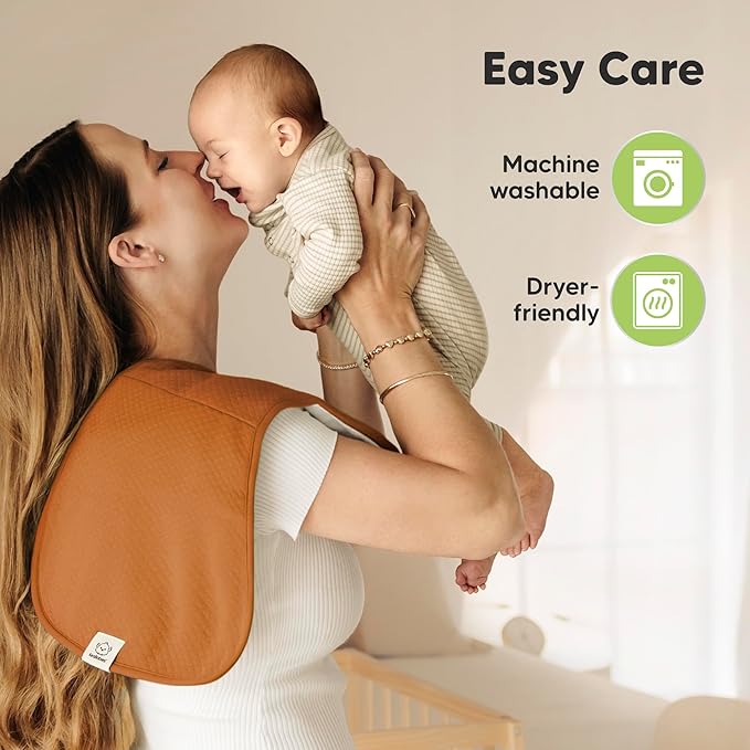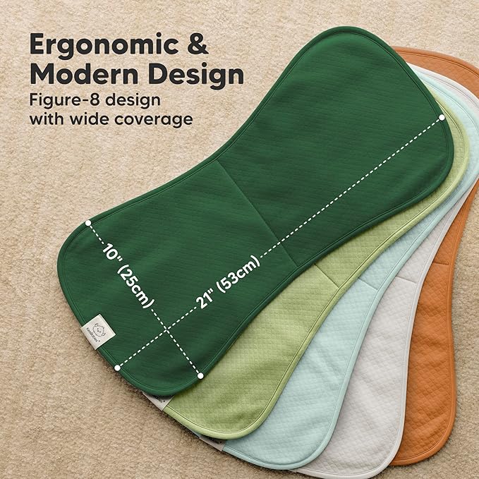 - Ergonomic Comfort - Snuggle up with these versatile organic burping cloths for babies, featuring a smart figure-8 design that stays snug on your shoulders. Lightweight and broad-coverage, they effortlessly guard your clothes against sneaky spit-ups.