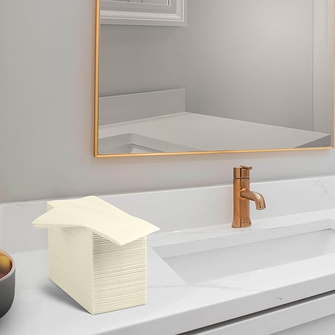Linen-Feel Cream Paper Napkins - Decortive Cloth-Like Disposable Dinner Napkins - Soft And Absorbent Napkins for Thanksgiving, Party, Wedding, Bathroom Or Any Occasion. (Pack of 100)