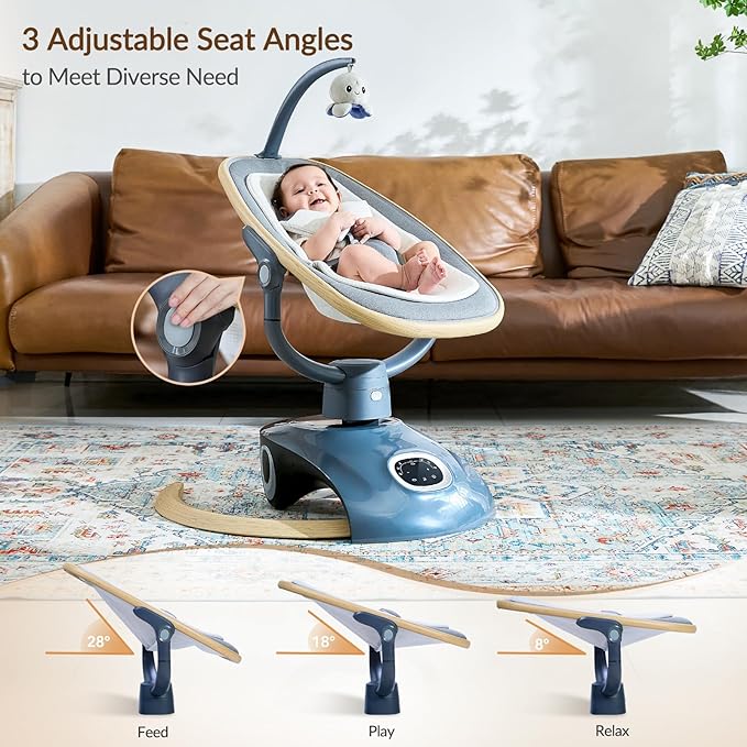 - Simple Setup and Adjustable Comfort: This electric baby swing offers tool-free assembly for quick setup. The baby seat features adjustable recline, supporting positions from sitting up to lying back, making it a convenient choice for parents on the go