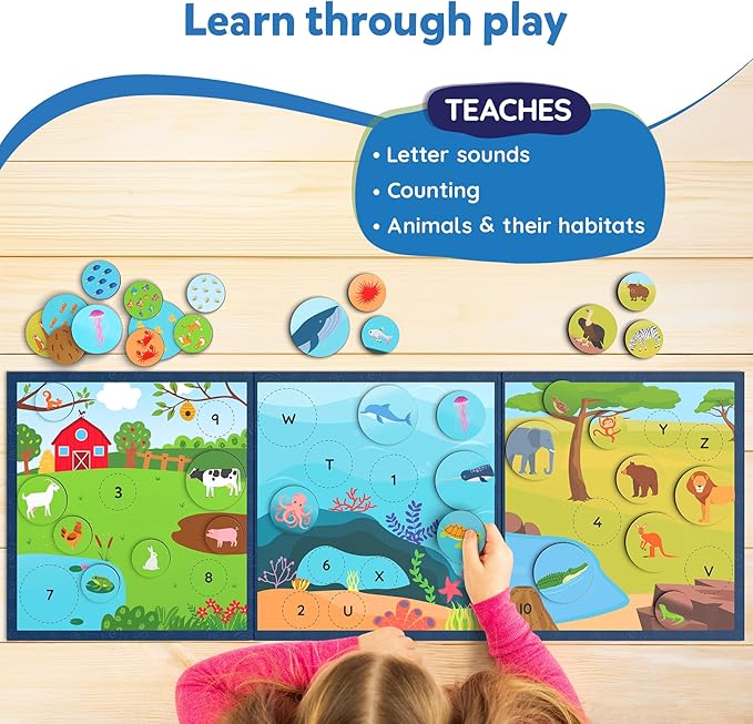 - LEARN THROUGH PLAY: Whether for playtime, homeschooling, or the preschool classroom, this magnetic activity serves as an excellent educational resource. It teaches kids about animals and their habitats, counting, and letter sounds - all while creating a playful learning experience.