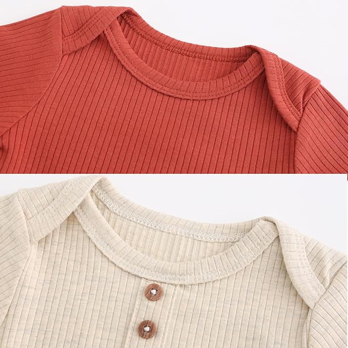 - Ribbed Fabric: The fabric better balances the bodysuit design and wearability, with a certain degree of elasticity and thickness, breathable, soft, colorfast. The solid color model is 100% cotton, and the patterned model is 95% cotton + 5% spandex