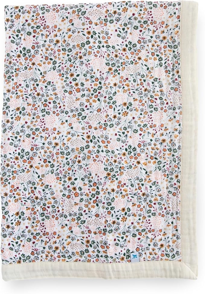 Little Unicorn Newborn Receiving Quilt | Ultra- Soft, Multi-Layered Muslin Fabric | Gift for Newborns & on-The-go (Pressed Petals)