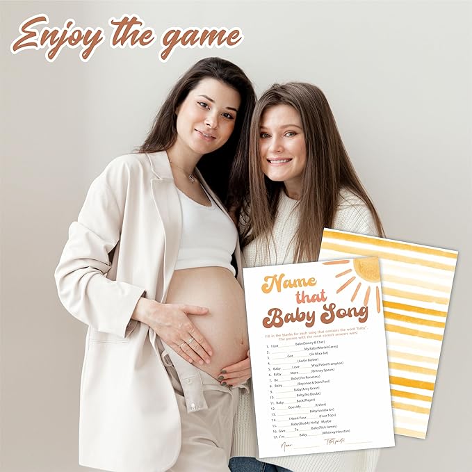 Name That Baby Song Game Kits For Baby Shower - 30 Double-Sided Fill In Watercolor Sunshine Style Game Cards 1 Answer Card For Gender Reveal, Baby Announcement, Party Favor & Supplies - C10