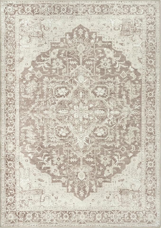 Bloom Rugs Washable Non-Slip 8' x 10' Rug - Light Brown Traditional Medallion Area Rug for Living Room, Bedroom, Dining Room, and Kitchen - Exact Size: 8' x 10'