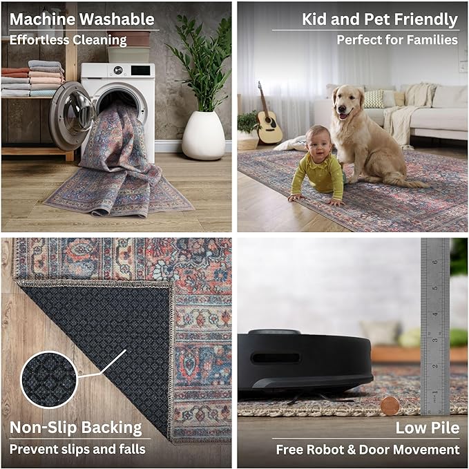 - EASY TO SETUP AND NON-SLIP: This one-piece machine washable rug with non-slip backing attached eliminates any additional setup. Simply unfold and lay flat upon arrival in the desired space. Non-slip backing prevents the rug from moving or sliding without the need for additional rug pad or grippers.