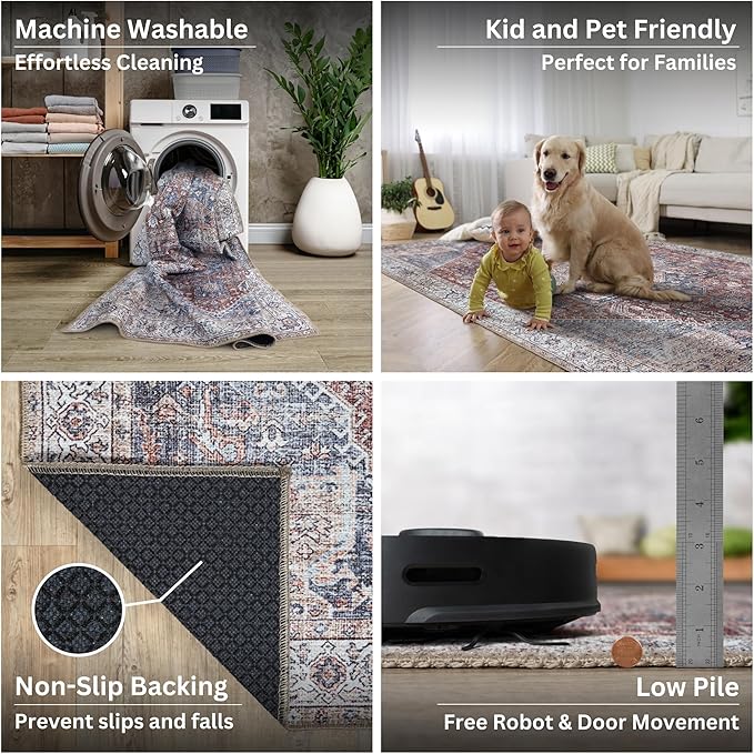 - EASY TO SETUP AND NON-SLIP: This one-piece machine washable rug with non-slip backing attached eliminates any additional setup. Simply unfold and lay flat upon arrival in the desired space. Non-slip backing prevents the rug from moving or sliding without the need for additional rug pad or grippers.