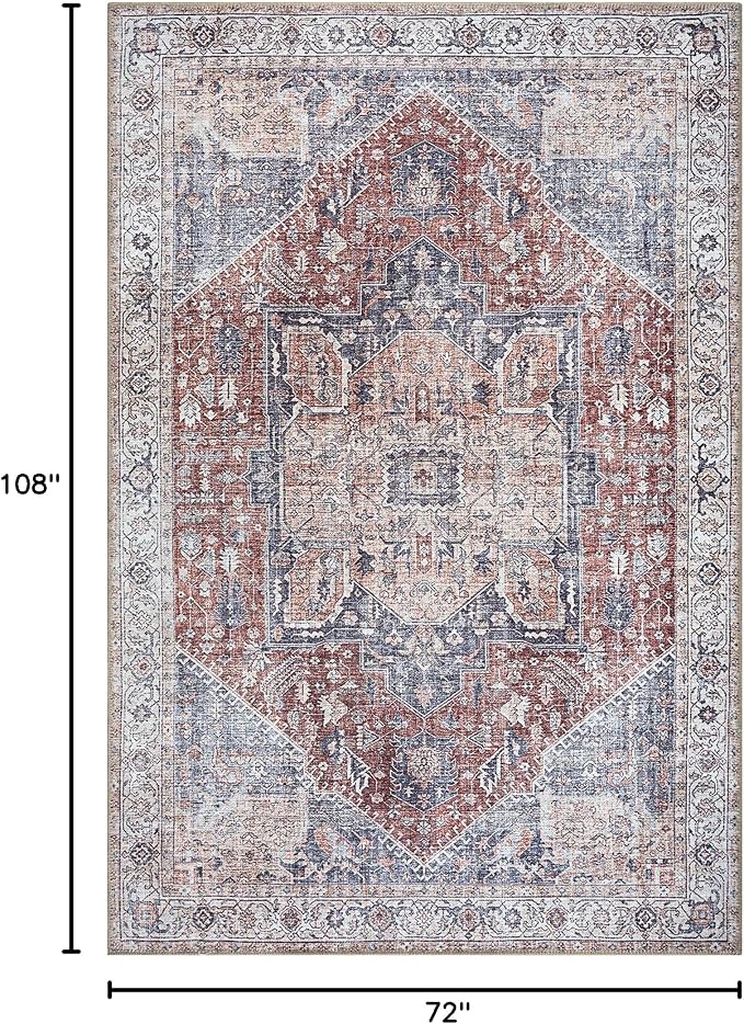Bloom Rugs Washable Non-Slip 6' x 9' Rug - Red/Blue Traditional Medallion Area Rug for Living Room, Bedroom, Dining Room, and Kitchen - Exact Size: 6' x 9'