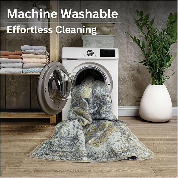 - MACHINE WASHABLE: Machine wash on delicate cycle (do not use bleach) at 85°F (30°C) and line dry or dry on air-only cycle without heat. Vacuum regularly and spot clean small stains. This easy to clean rug is perfect for families with kids and pets, and for high traffic areas.