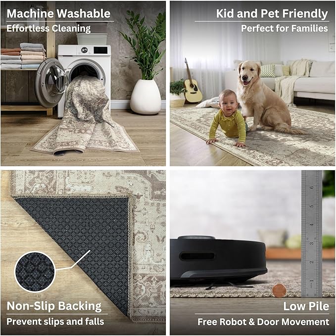 - EASY TO SETUP AND NON-SLIP: This one-piece machine washable rug with non-slip backing attached eliminates any additional setup. Simply unfold and lay flat upon arrival in the desired space. Non-slip backing prevents the rug from moving or sliding without the need for additional rug pad or grippers.