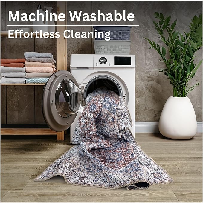 - MACHINE WASHABLE: Machine wash on delicate cycle (do not use bleach) at 85°F (30°C) and line dry or dry on air-only cycle without heat. Vacuum regularly and spot clean small stains. This easy to clean rug is perfect for families with kids and pets, and for high traffic areas.
