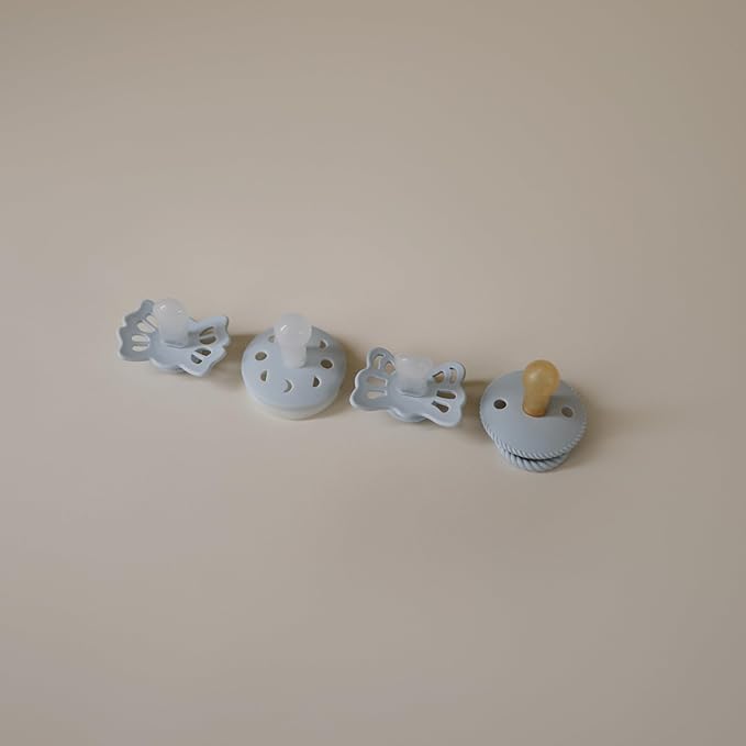 FRIGG Baby's First Pacifier - Moonlight Sailing 4-Pack | Made in Denmark | BPA-Free (Powder Blue, 0-6 Months)