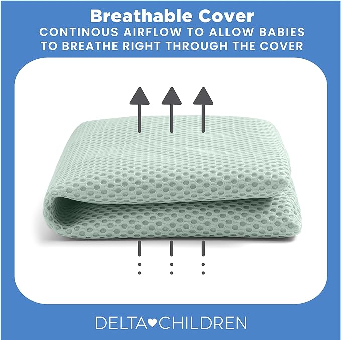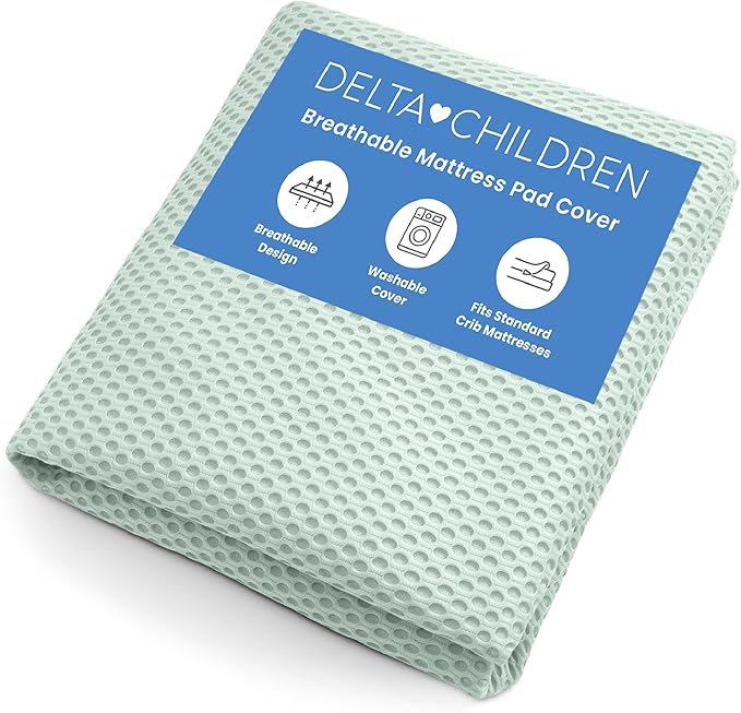 Delta Children Breathable Crib Mattress Pad Cover - Make Every Crib Mattress Breathable - Elastic Edges for Secure, Universal Fit - Machine Washable - 1 Pack, Green