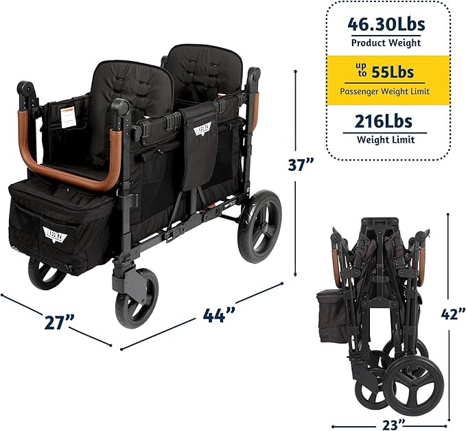 - Built for Comfort and Durability: Features a cushioned interior and a canopy system with blackout panels and SPF sun protection, providing comfort and shelter from the elements, ensuring every ride is enjoyable for your children.