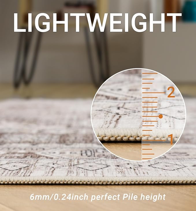 zesthome 9x12 Area Rugs,Stain Resistant Washable Rug,Ultra-Thin Rugs for Living Room,Bedroom,Non-Slip Backing Home Decor Large Area Rug (Brown/Beige,9'x12')
