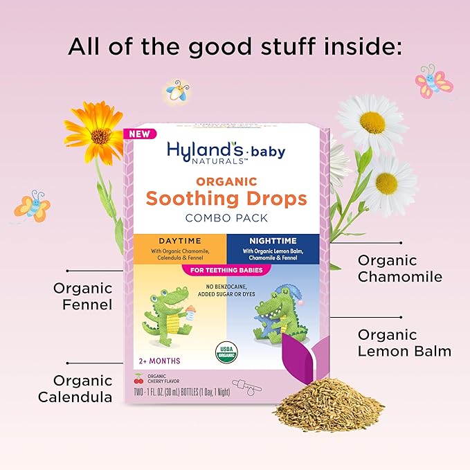 Hyland's Baby Organic Daytime and Nighttime Soothing Drops Combo Pack, Drops for Oral Discomfort, 2 oz.