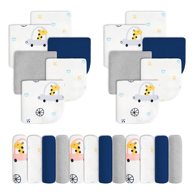 Viviland Baby Washcloths, Super Soft Baby Bath Towels for Newborn 24 Pack, Absorbent Face & Body Wash Cloth for Baby Girl, Blue-Giraffe Pattern, 9 x 9 inch