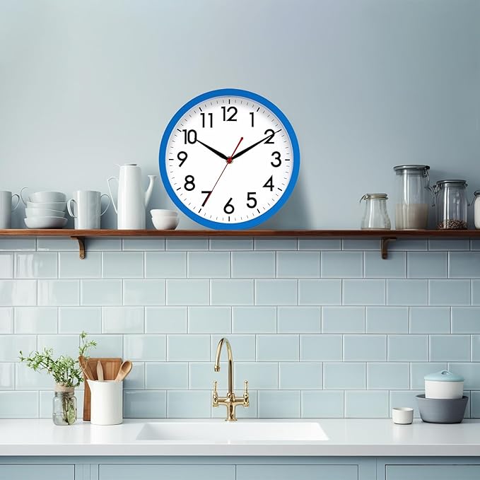 AKCISOT Wall Clock 10 Inch Silent Non-Ticking Modern Clocks Battery Operated - Analog Classic for Office, Home, Bathroom, Kitchen, Bedroom, School, Living Room(Blue)