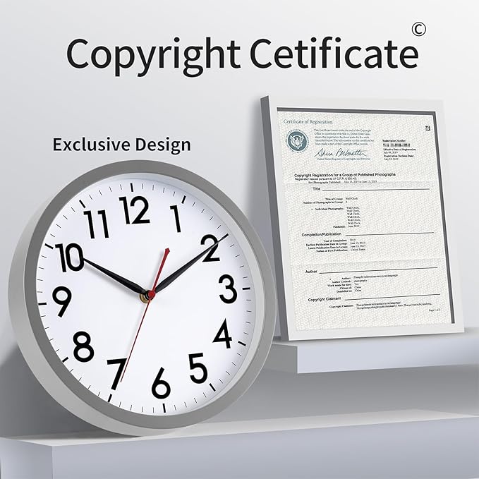 AKCISOT Wall Clock 10 Inch Silent Non-Ticking Modern Clocks Battery Operated - Analog Classic for Office, Home, Bathroom, Kitchen, Bedroom, School, Living Room(Gray)