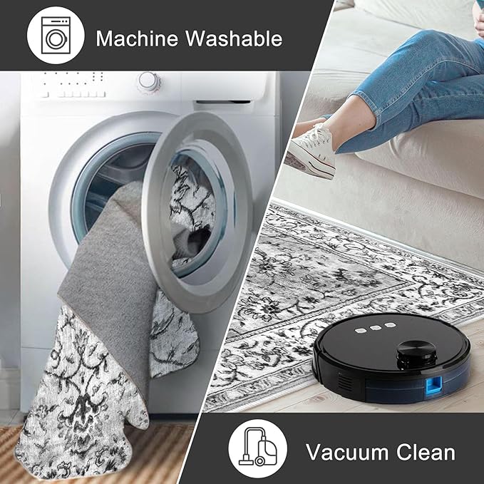 - Machine Washable Runner: This hallway rug is easy to clean—machine washable, vacuum, sweep, or wipe with a cloth. Use a low-speed vacuum to avoid bunching, as its thin, lightweight design may shift with stronger vacuums. Avoid bleach to preserve color