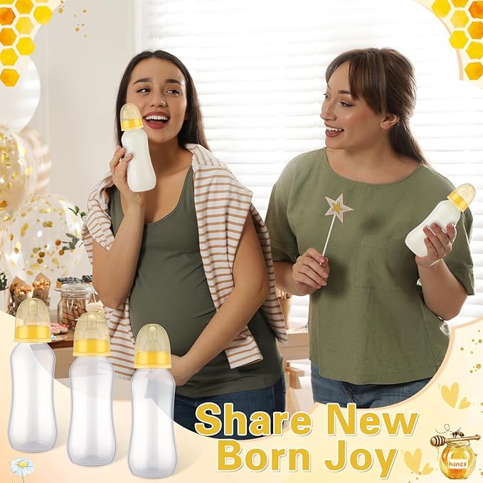 - Ideal Size for Fun: these bee baby gift sets baby bottles measure approx. 2.36 x 7.68 inches/ 6 x 19.5 cm and can hold up to 9.5 oz/ 280 ml; The bottle chug sign measures approx. 5.12 x 7.87 inches/ 13 x 20 cm; These dimensions make them easy to handle and enjoy during the baby shower games