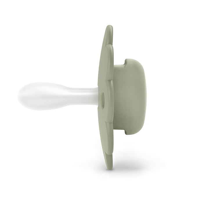- Ergonomic round shape with scalloped edge, prevents baby pacifier from touching the nose, allowing for free air circulation between pacifier and nostrils.