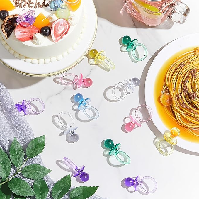 - Package includes: you will get 48 pieces of acrylic baby pacifiers in cute color, they are nice and adorable table decorations for baby showers party, just sprinkle a few on the table to add a sweet and warm party atmosphere