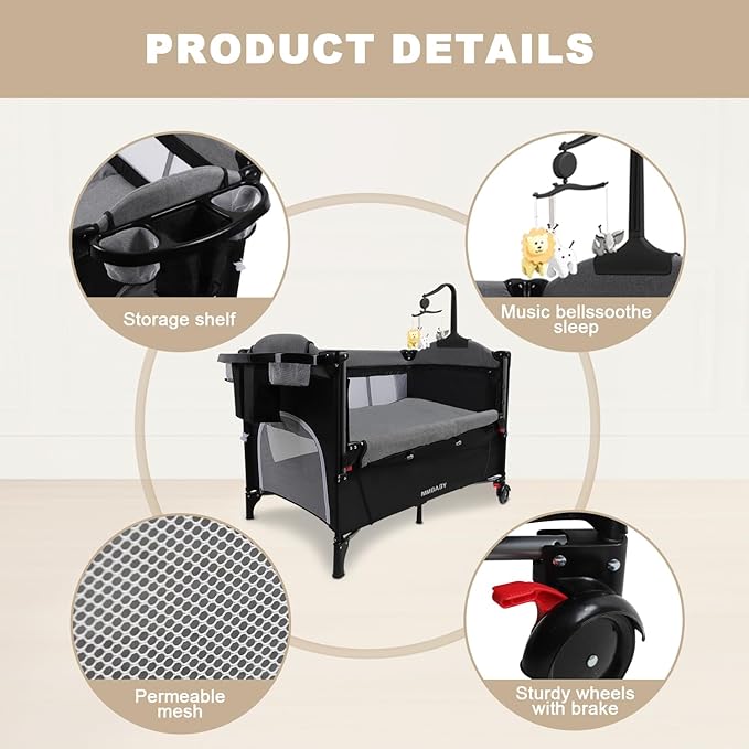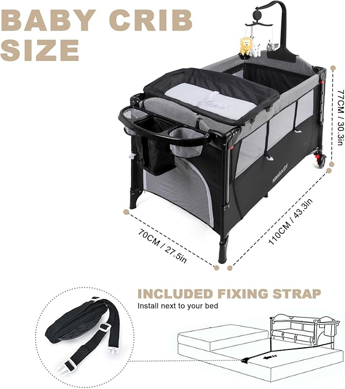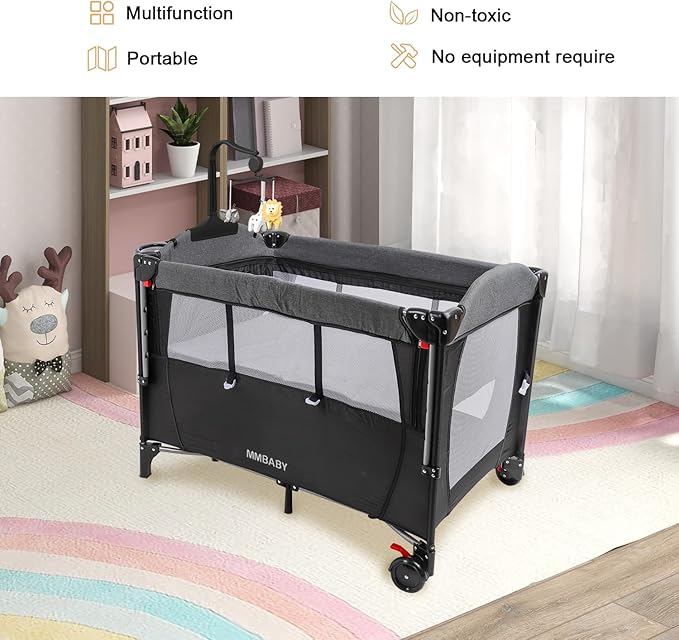 - 🎈【5-in-1 Bed Side Sleeper】 This multifunctional baby pack n play can serve as a baby rock playard, bedside crib, activity center, U-shaped diaper changing table, and baby crib. Whether it provides a comfortable resting place for your cute baby, or daily activities and care, this 5-in-1 crib is the best choice. Other than that, the U-shaped diaper changing table comes with a safety belt to prevent the baby from rolling off.
