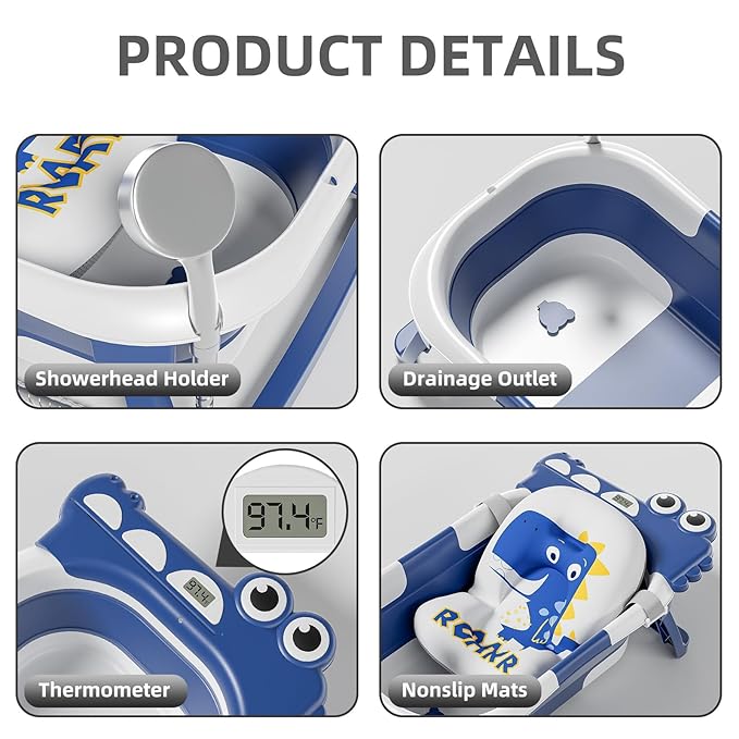 TPN Collapsible Baby Bathtub, Baby Bath Tub with Soft Cushion & Real-Time Thermometer, Baby Bathtub Infant to Toddler Tub (0-36 Months), Portable Newborn Travel Bath tub