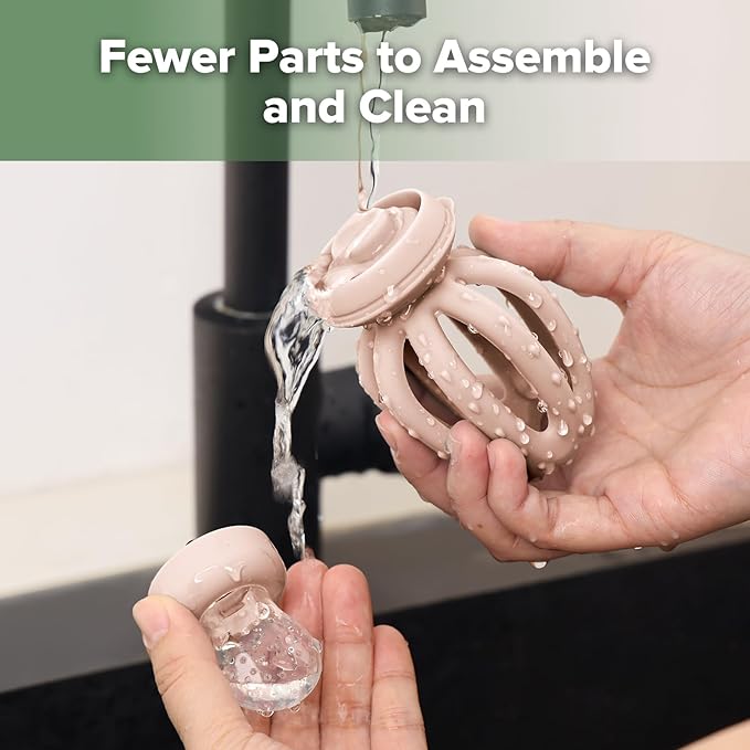 - ENCOURAGES SKILL DEVELOPMENT: Designed for tiny hands, this baby fruit feeder is soft-to-the-touch, and it features textured octopus arms that not only entertain but also help develop motor skills. The nature-inspired colors of the set stimulate sensory development, making mealtime both fun and beneficial