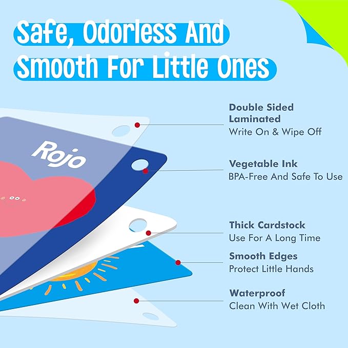 - Easy to Use and Storage: The flashcards are lightweight and well-packed, perfect for on-the-go learning and travel friendly. It measures about 4.7” x 3.7”, proper size for toddlers’ little hands. Come with 2 rings for easy sorting and organization.