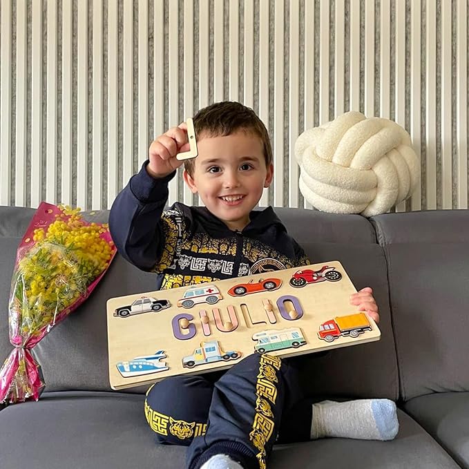 - Educational Marvel: Foster development through our Name Puzzle, enhancing motor skills and introducing colors and shapes inspired by Montessori techniques. These custom puzzles are not just toys but also educational toys for 1-year-old boys, aiding in their early learning and development.