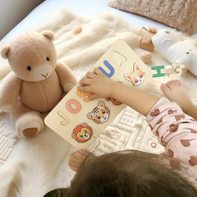 - Wooden Toys for Toddlers 1-3: The name puzzle for kids personalized showcase intricately crafted wooden animal pieces that form your child's name. These adorable creatures not only make learning exciting but also serve as delightful room decor when not in use.