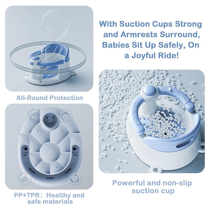 - ✔️【Comfortable and Secure with Strong Non-Slip Suction Cup】: This baby bath chair is designed to sit ergonomically and features a high back and armrests to provide a comfortable bathing experience for your baby. 4 ultra-strong non-slip suction cups ensure stability and securely attach to any smooth bathtub surface to ensure a safe bathing experience.