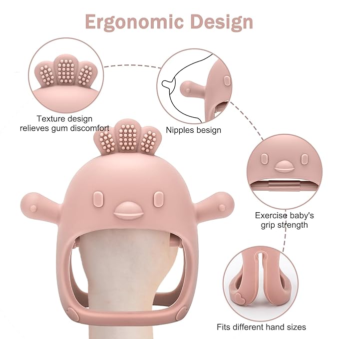 - Soothe Baby Sore Teether:Imitate pacifier&nipple shape, and the soft silicone touch point massage granules privide the teething pain relief and satisfy different bite experiences. the cute chick glove silicone teether improve baby's teeth occlusion ability, it will helps gum stimulation and teeth growth.