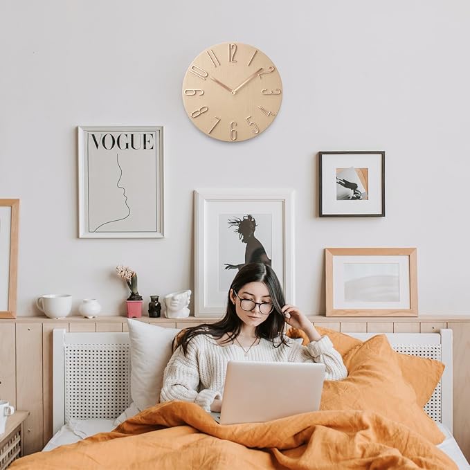 Faupugh 12 inch Silent Wall Clock, Battery Powered Wall Clock Decoration Clock, Suitable for Home, Office, School, Kitchen, Bedroom, Living Room (Beige)
