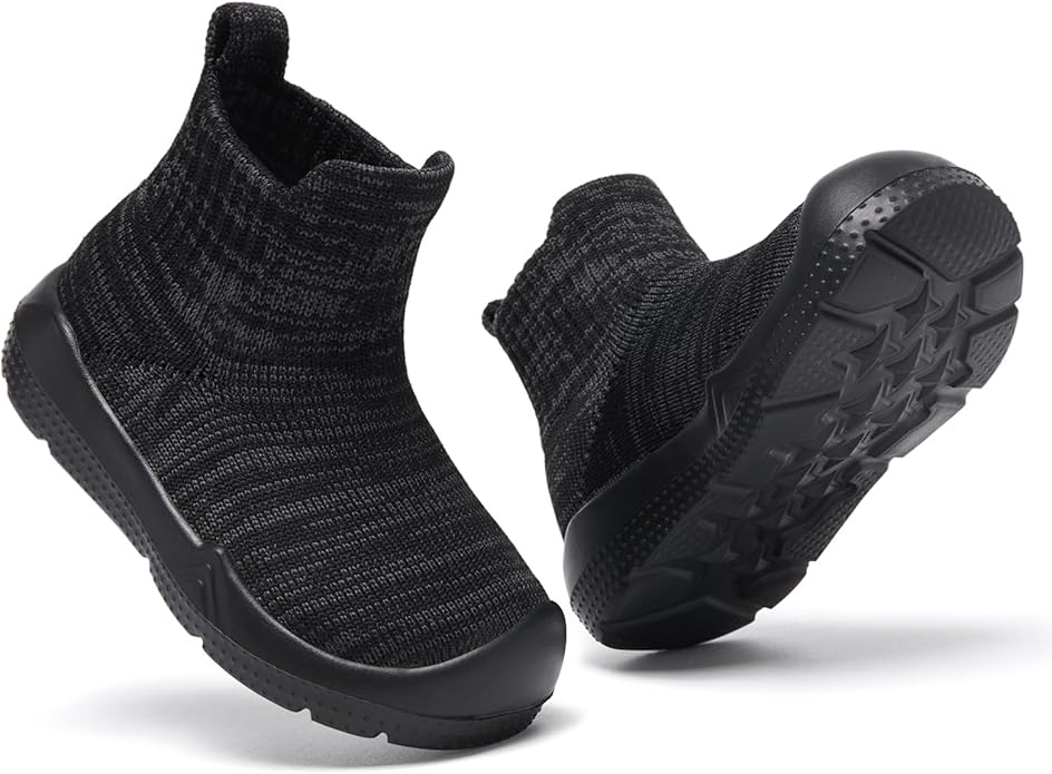 - Friendly Sock-like Upper: Sock-like stretchy textile construction upper hugs the foot to keep them comfortable and flexible when babies are on the move. Baby sock shoes made of soft fabric knit are also friendly to the skin, healthy, and very safe for infant babies.