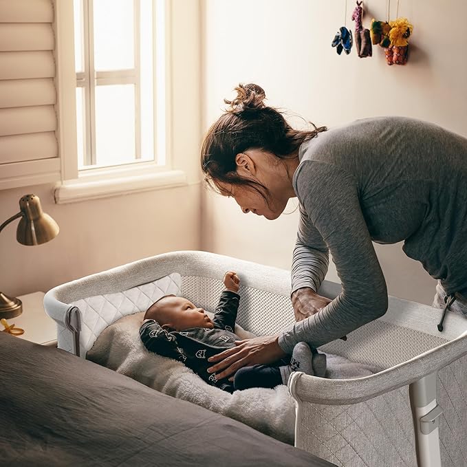 Baby Bassinets, 9 Height Adjustable Bedside Bassinet for Baby, Bedside Sleeper Bassinet with Breathable Mesh and Lockable Wheels, New Born Baby Essentials Must Haves