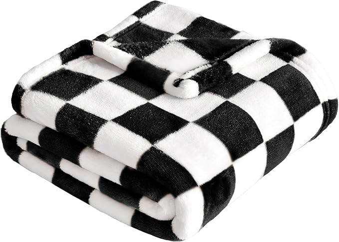 Yurhap Checkered Baby Blanket Fleece Baby Blankets for Boys Girls, Ultra Soft Cozy Fluffy Infant Toddler Newborn Receiving Blankets for Crib Stroller, 30''x40'', Black