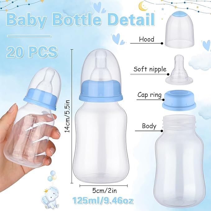 - Package Inclusion: baby bottles for baby shower provides you with a complete party enhancement package; Each package comes with 20 baby bottles and 1 chug sign, which is sufficient for a sizable party, enabling people to engage in the fun and excitement; The abundant supply ensures no one is left out, and everyone gets to participate fully in the games