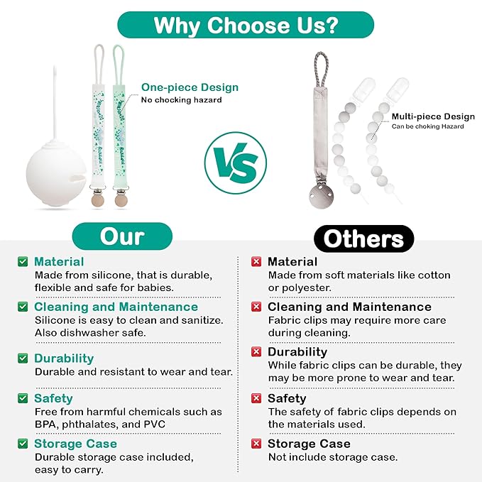 - Travel-Friendly Case Included Compact and hygienic storage case fits easily in diaper bags, keeping pacifier essentials clean on the go.