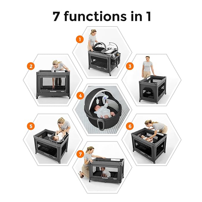 - 【Zipper Mesh Gate】The Pamo Babe Playards features three support tubes that maintain stability and balance. The Baby Nursery Center, which comes with a zipper gate, allows you to store baby's supplies in the bottom layer when using the bassinet. When using the playard, you can easily put the baby in and out through the gate and play games with the baby.