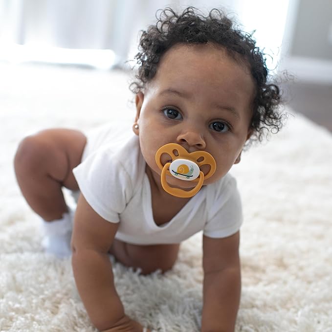 Dr. Brown's Advantage Glow-in-The-Dark Baby Pacifier, Fully Symmetrical Soother with Soft Silicone Bulb, Skateboard Snail-Blue Nature, 6-18m, BPA Free, 4 Pack