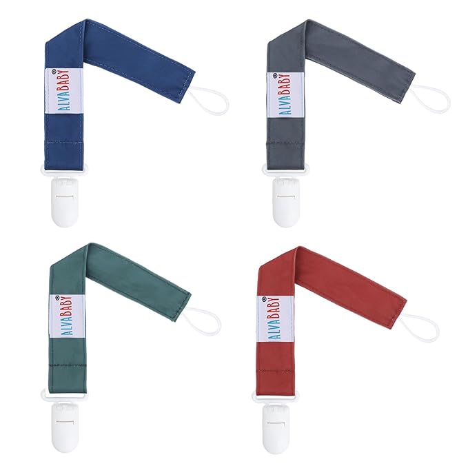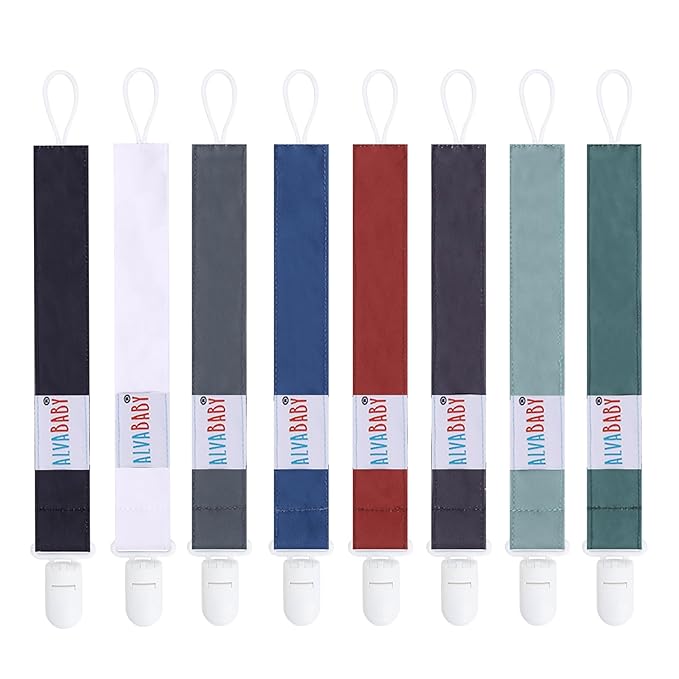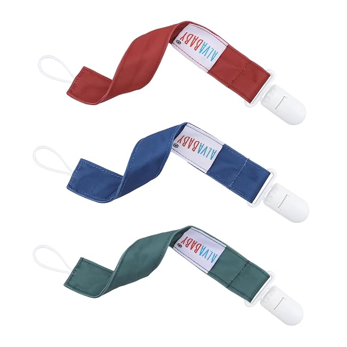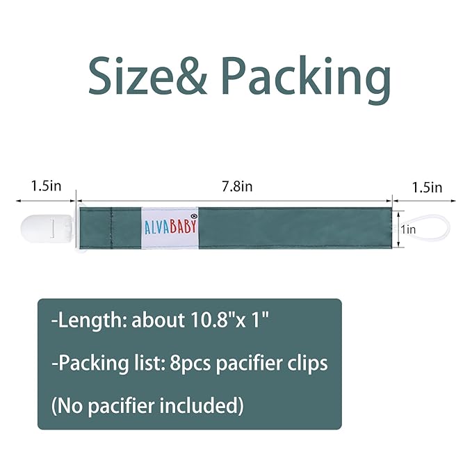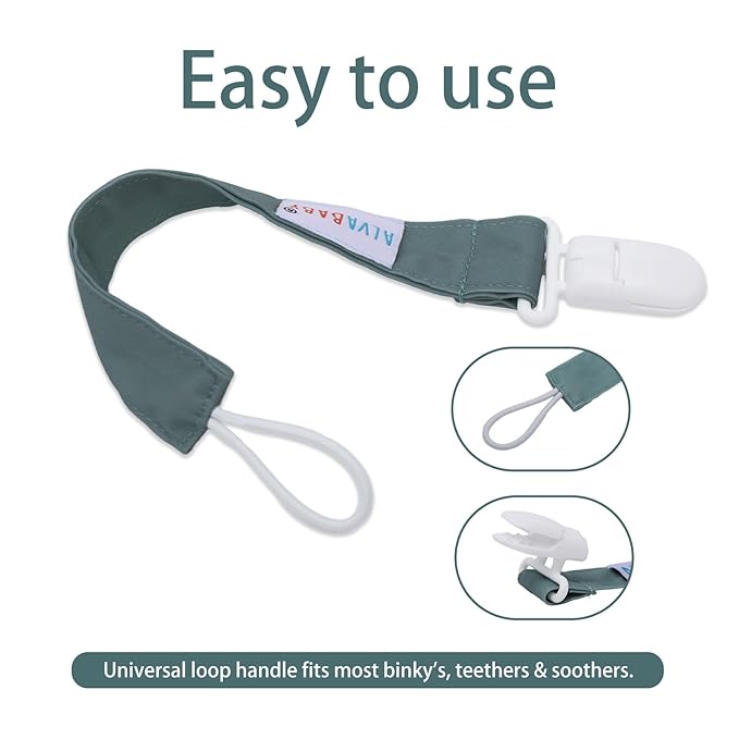 - Material-ALVABABY baby pacifier leash are made of polyester fabric,plastic clip,nylon rope.Paci clip strap is a universal pacifier leash designed with a loop to be compatible with all types of pacifiers,suitable for babies of all ages that newborn,infants,toddler.Pacifier holder clip helps a crawling baby keep their pacifier from dragging on the dirty ground.