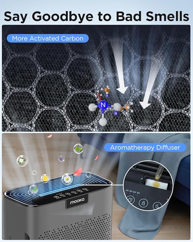 - FILTER REPLACEMENT REMINDER: This air purifier with washable filter has a filter change reminder function. When the filter reaches the end of its service life, the filter indicator lights up to remind you to replace the filter. You can also clean the pre-filter to extend the its service life. After installing the filter, press and hold the filter button for 3 seconds until you hear a beep to reset the filter reminder. Purchase MOOKA official replacement filter on Amazon to keep the optimal purification effect