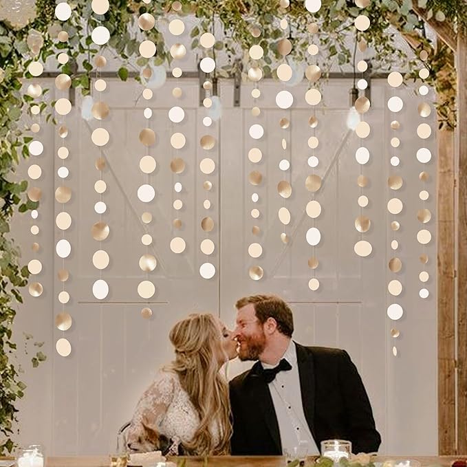 - Environmental Material-Our cream champagne gold color dot garland are made of high quality card stock and champagne gold metallic paper,carefully hand-made then machine-sewn together with thread.durable and reusable.